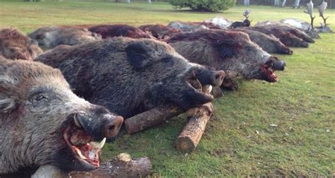 Pour le gros gibier, nous organisons régulièrement des montéras, avec des groupes d'environ 20 à 40 chasseurs, sur des chasses d’une durée de 2 jours. Nous y chassons essentiellement le cerf, le sanglier, le mouflon et le daim.